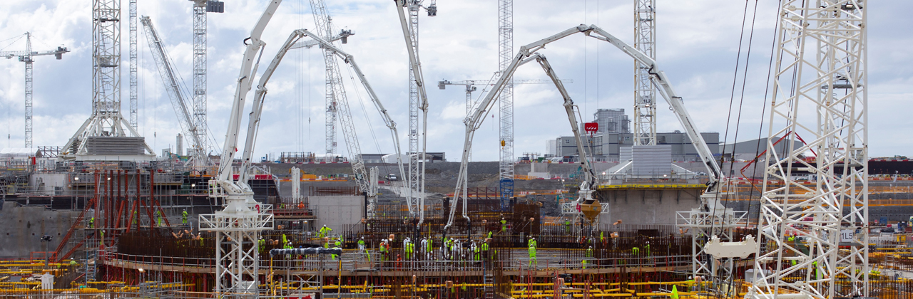 The 9,000 cubic metre, five-day, pour was to construct the last of five reinforced concrete segments that make up the cross-shaped foundations on which all of the first nuclear reactor’s buildings will sit. The record-breaking pour beats the previous record for England set by the Shard in London.