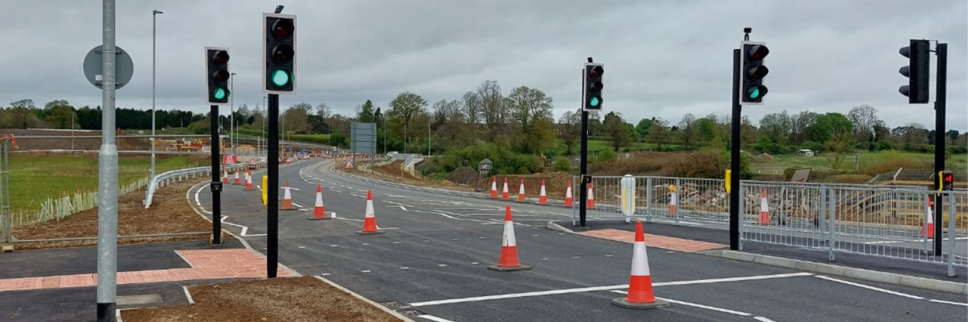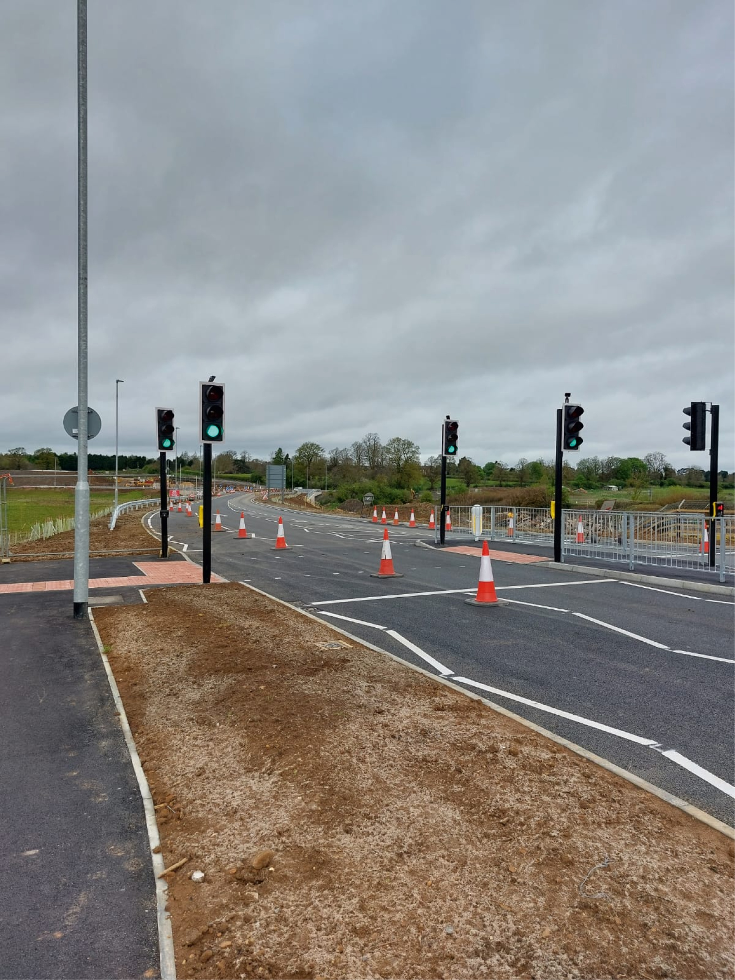NNWRR-03. Completed signal‑controlled junction on the Northampton North West Relief Road.