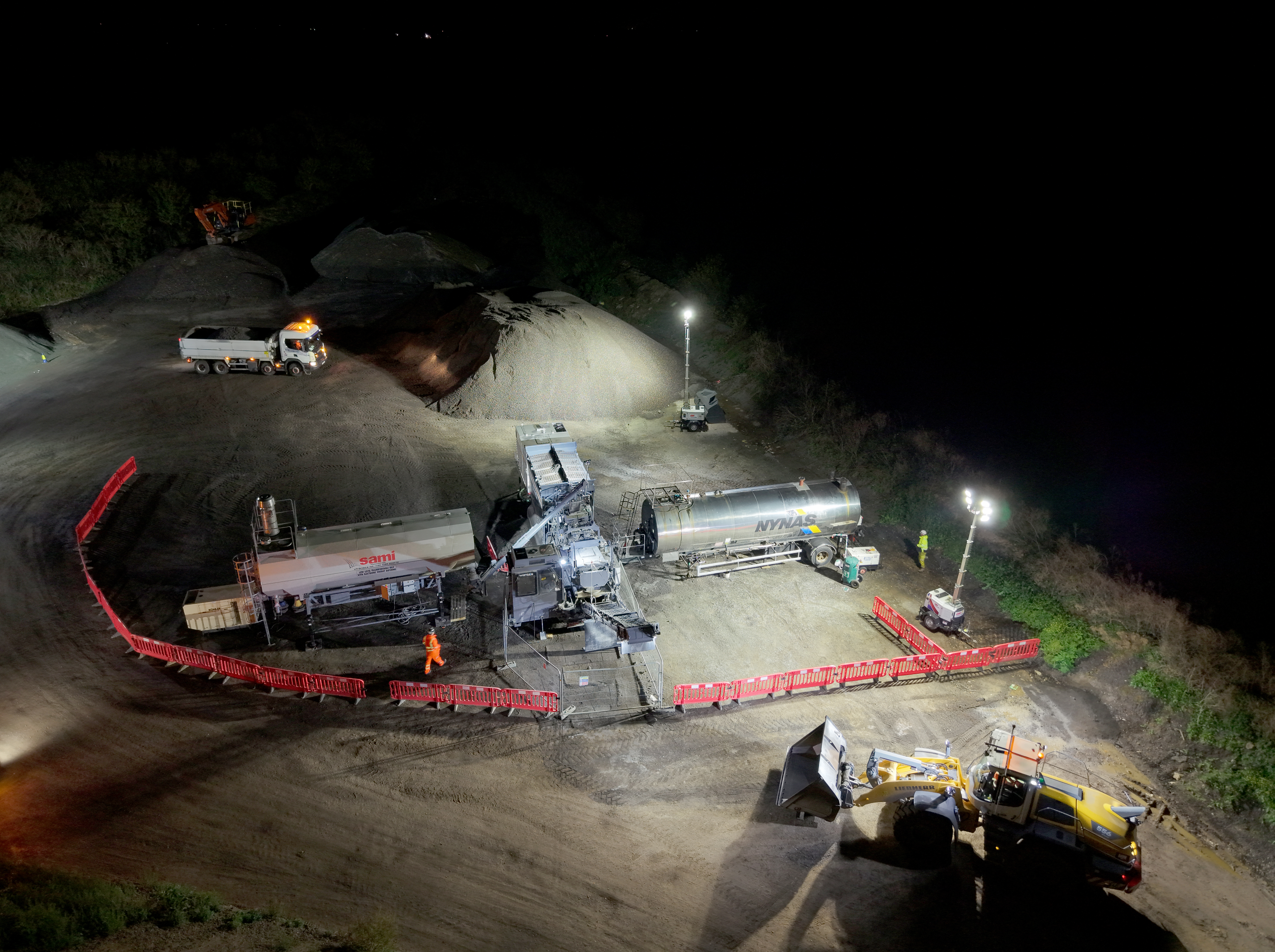 The company used its high-performance Wirtgen KMA 240i cold mixing plant to produce the evoBuild foamed asphalt. The material offers a lower carbon alternative for base and binder course applications is designed and manufactured in accordance with ISO 9001 and is compliant with SHW cl948 (now CC 202) and BS 9228:2021.
