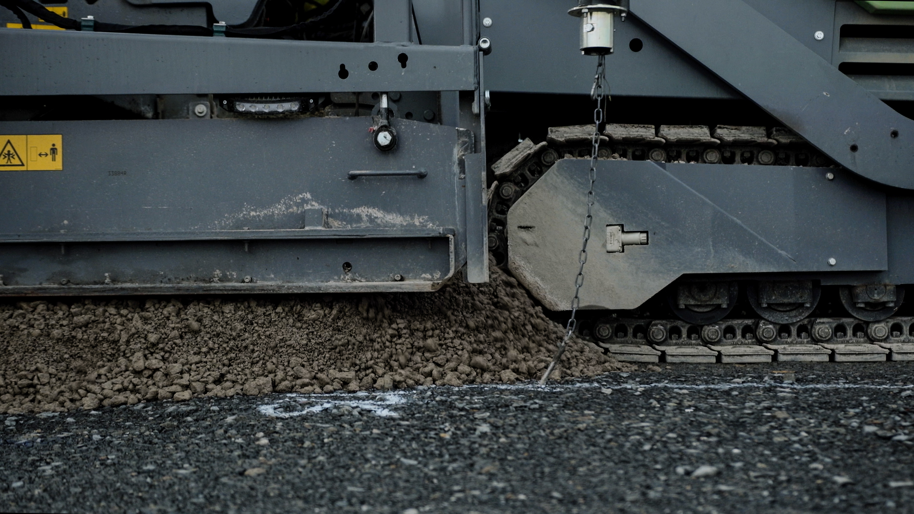The roller was equipped with edge compactors to prevent any displacement at the open edge and ensure a clean vertical face for subsequent material placement. It also included an integrated joint cutter, which created transverse and longitudinal induced cracks immediately after initial compaction. These cracks were no more than 20mm wide and 75-100mm deep and span the full width of the road in accordance with specifications.