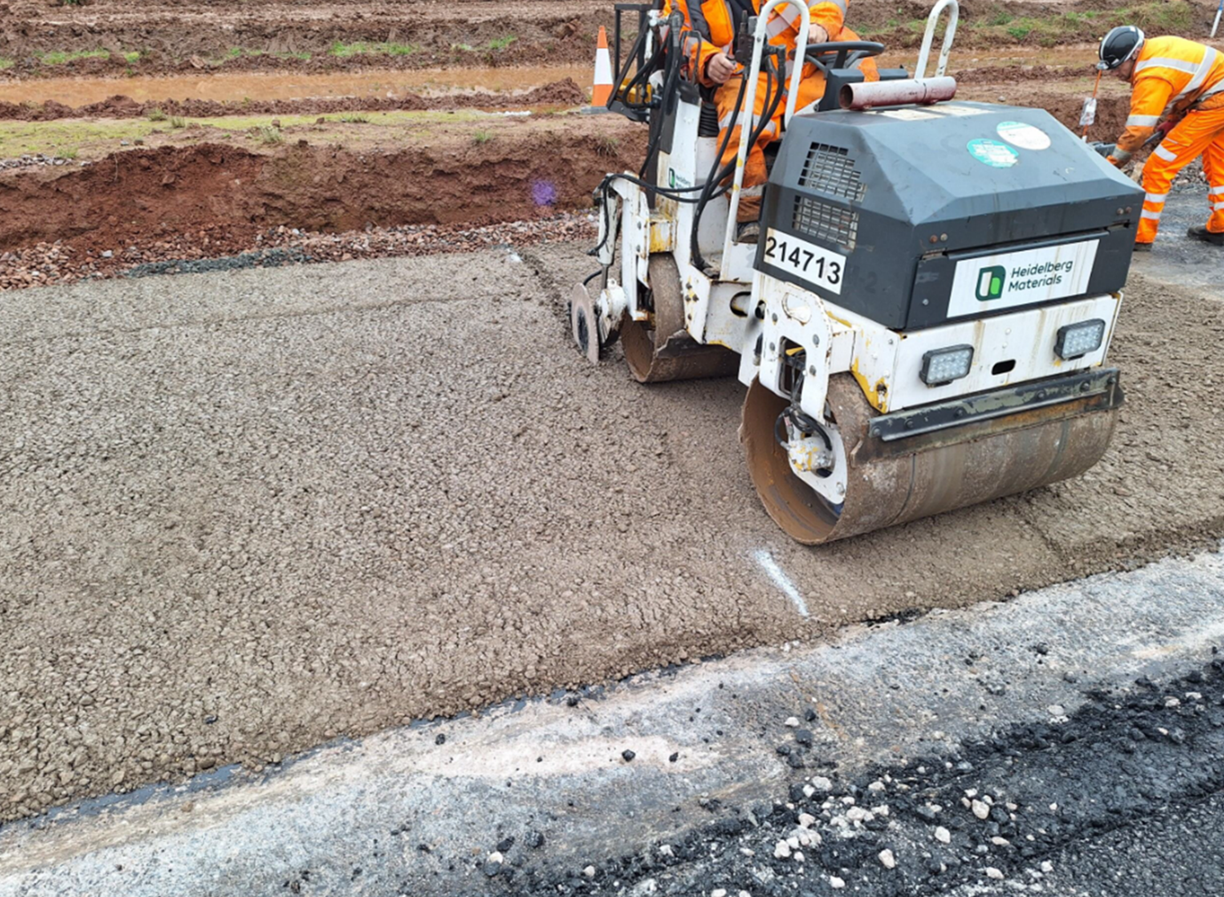 For example, during quality control, material samples were taken and compacted into cube moulds. They were allowed to cure for up to 28 days, and then crushed in compression tests to confirm that the CBGM material achieved the required strength.