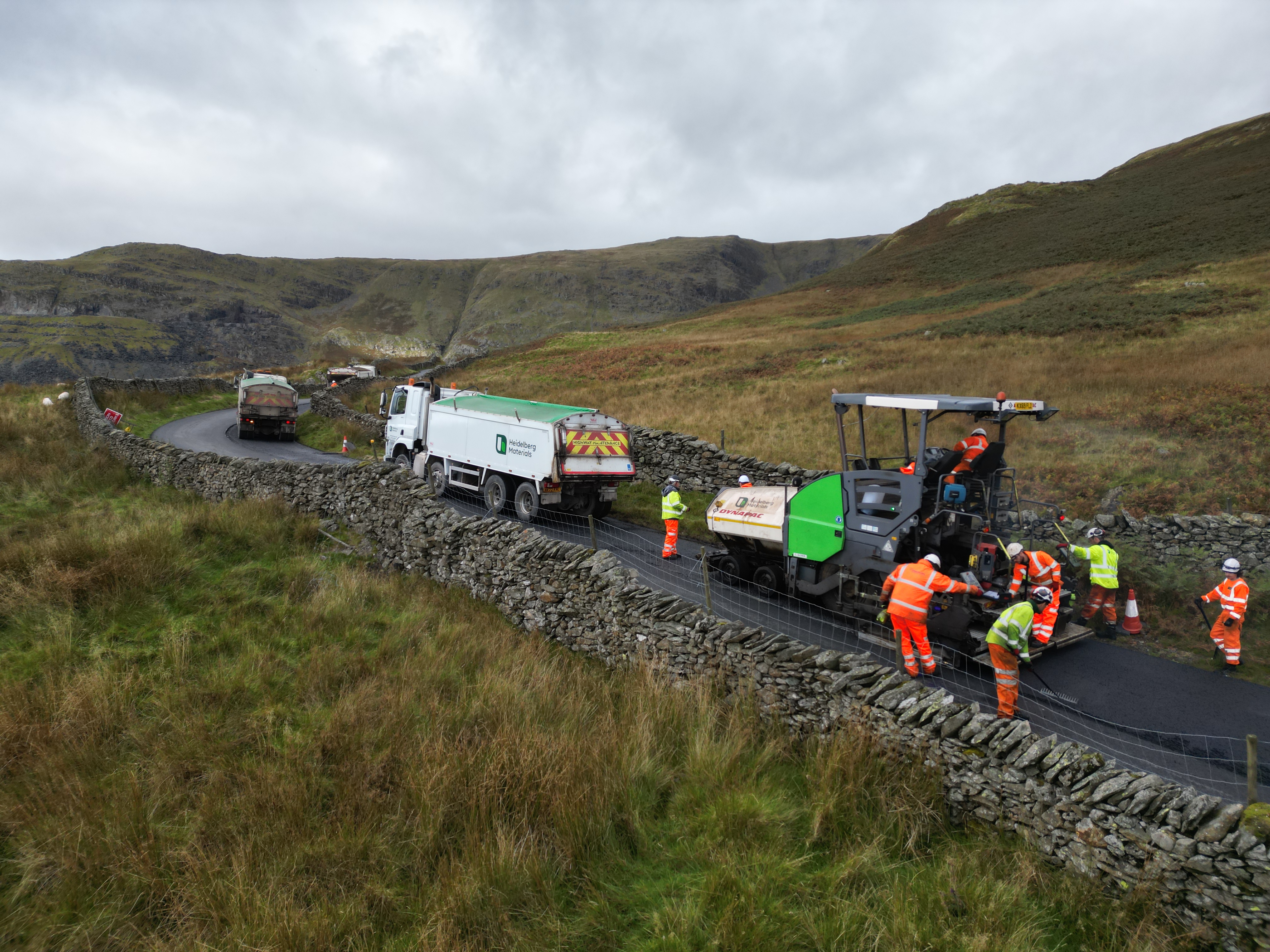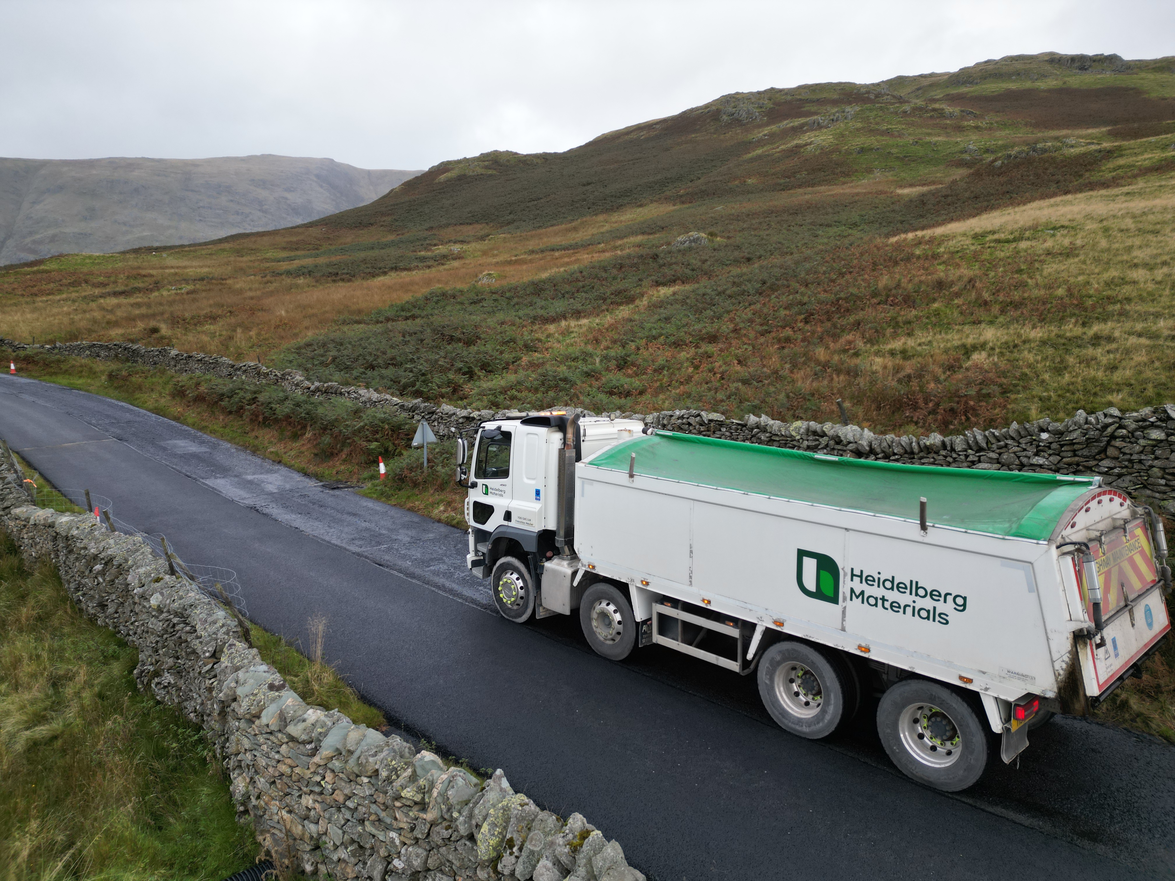 Kirkstone Pass_02. Heidelberg Materials delivery vehicle supporting resurfacing works on the steep gradients of Kirkstone Pass.