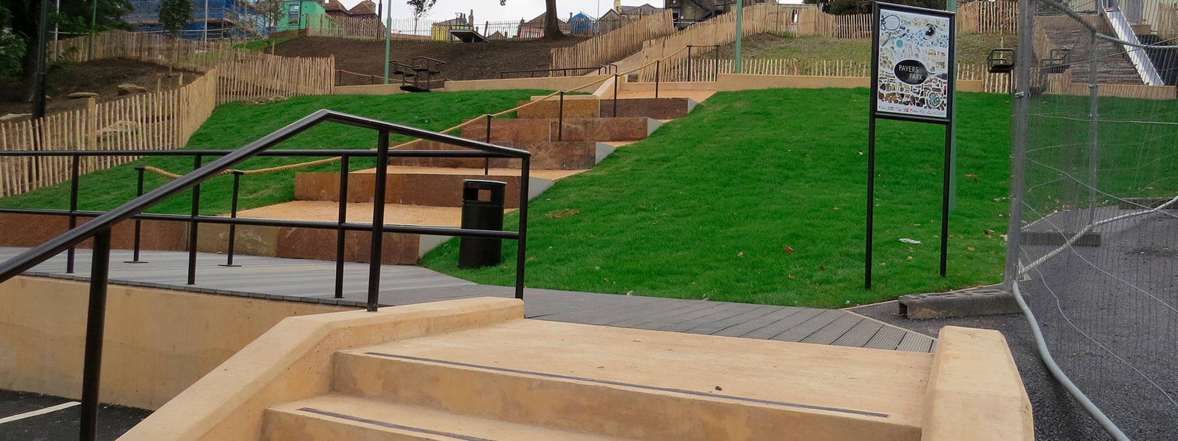 Payers Park, designed by urban design specialists muf architecture/art, provides a place to play, exercise and relax for Folkestone’s residents, visitors and shoppers. The brief was to create a new focal point for the community that would act as a safe access link through the town centre.