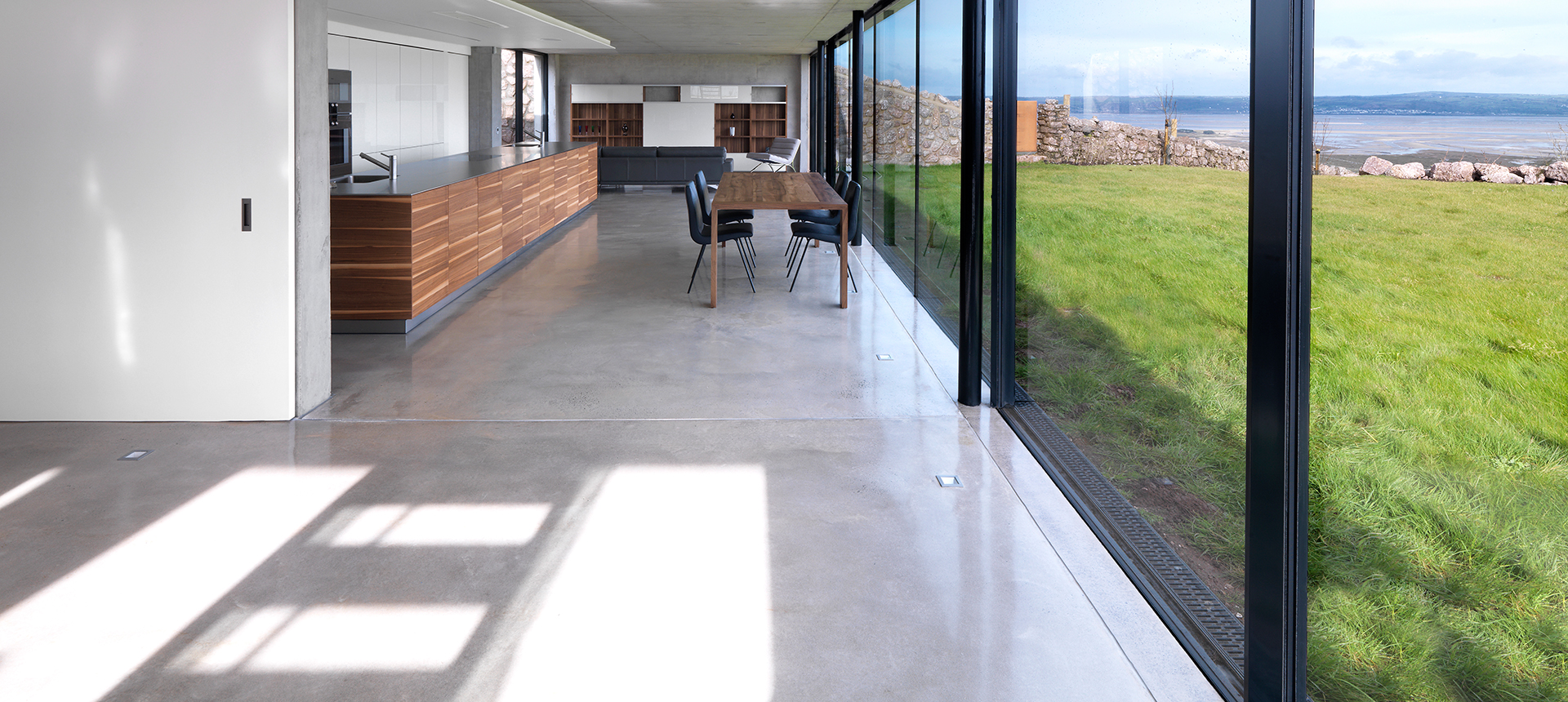 evoBuild low carbon GGBS has a different chemical make-up to ordinary cement which gives it an inherent ability to reduce the permeability of the concrete through secondary hydration.The house has surpassed all the sustainability targets set. In addition to achieving Code Level 5, it has an EPC certificate A rating after achieving a perfect 100 out of 100 score. It uses concrete’s inherent thermal mass to create a highly insulated building fabric and combines this with a number of technological solutions to achieve its credentials. Photovoltaic solar panels, solar thermal panels, a ground source heat pump, rainwater harvesting, wood burning stoves, low energy LED lighting and MVHR (mechanical ventilation with heat recovery) have all been installed. The result is a building which had a Target Emission Rate of 22.55kg/m2 but delivered an Actual Building Emissions Rate of -0.46kg/m2.