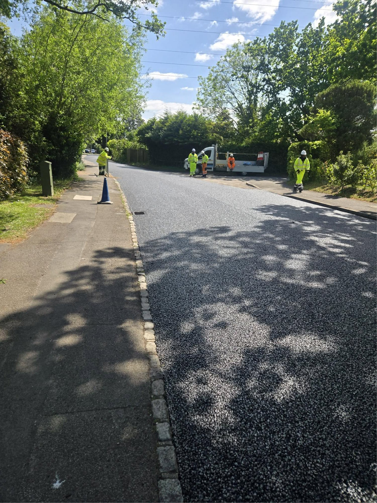 Wokingham_Workers. Completed surface dressing works supporting long‑term pavement performance in Wokingham.