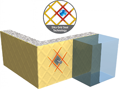 Sika® Grid Seal Technology is at the core of SikaProof®-A. It consists of a special sealant that is factory applied in a grid pattern, which creates ‘mini watertight compartments’. This sealant grid seals and blocks any lateral water underflow, even in the event of any local damage to the membrane.