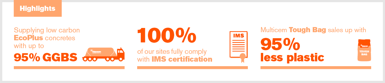 We have already exceeded the new global HeidelbergCement commitment to reduce the average CO2 within cementitious products to 525 kg/tonne by 2025 and to less than 500 kg/tonne of by 2030. By using our lower carbon cements in combination with Regen we are already achieving an average CO2 within our cementitious products at 418 kg/tonne as a national average. EPD's can be provided if our customers require a tailored low carbon solution for their project and are based on the best mix design that balances their performance and environmental impact needs.